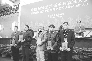 中国陶瓷艺术继承与发展大会是我国改革开放以来,陶瓷艺术界首次召开的规模最大、级别最高的会议。会上,缅怀了老一代陶瓷艺术家,表彰了一批年龄在70岁以上,长期从事陶瓷艺术、设计、教育工作,为中国陶瓷行业的振兴和发展做出了巨大贡献的陶瓷教育家和陶瓷艺术设计工作者,授予他们“中国陶瓷艺术与设计教育杰出贡献奖”;授予一批为中国陶瓷历史名窑的恢复与发展做出杰出贡献的陶瓷艺术工作者“中国历史名窑恢复与发展贡献奖”。我省陶瓷艺术工作者张志忠和蔺占献在会上荣获奖项,他们为中国艺术陶瓷的发展、继承和弘扬做出的工作得到了与会人员的认同。