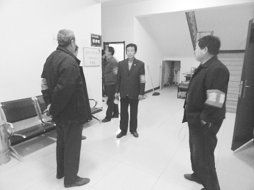 派出所巡防队员在辖区单位检查巡逻
