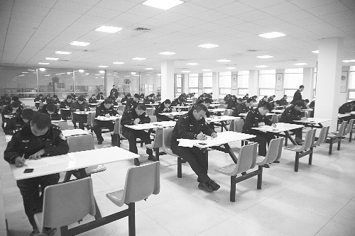 为积极响应市委政法委、市法治宣传教育领导小组办公室《关于开展〈刑事诉讼法〉、〈民事诉讼法〉集中宣传活动的意见》的有关要求,进一步贯彻落实“一法两规定”,近日,衡水市公安局组织开展了全市公安机关法律知识竞赛活动。2013年12月25日上午,来自全市各级公安机关的100余名民警在市公安局参加了初赛。图为笔试现场。