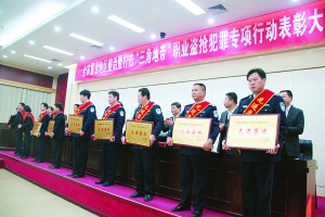 本报讯 (记者 张兰华 通讯员 袁青华)1月3日,衡水市委、市政府隆重召开全市重点地区整治暨打击“三角地带”职业盗抢犯罪专项行动表彰大会,7名公安民警分别被市委、市政府向省公安厅申报个人一等功、个人二等功;7名政法干警被市委、市政府荣记个人二等功,35个单位和38名干警被授予先进集体和先进个人荣誉称号。会上,衡水市委、市政府奖励市公安局专项行动办案经费100万元。