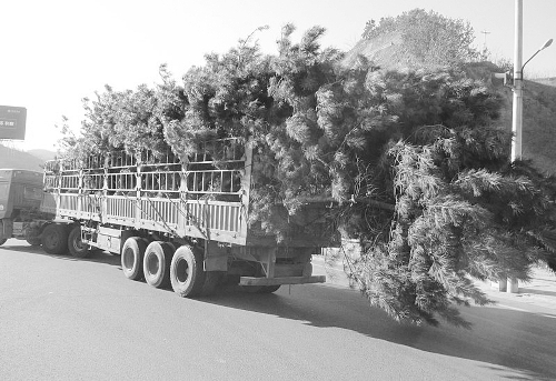 1月5日,高速交警鹰手营子大队民警巡逻至承唐高速公路主线站时,一辆大型货车载满树枝晃晃悠悠从站口驶过,不断有树枝掉落,给后面行驶的车辆带来安全隐患。民警立即将该车拦下,对驾驶员进行安全教育,讲解违法行为可能产生的严重后果,并根据相关法律对其进行了处罚。图为违法超限车辆。 臧鼎 摄