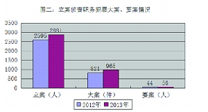2013年,立贪贿案件1351件1932人,其中厅级干部9人、县处级干部42人,为国家挽回经济损失3.23亿余元
