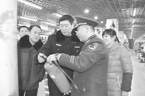 为进一步推进“清剿火患”专项行动的深入开展,预防和遏制重特大火灾事故发生,1月15日,鹿泉市副市长、公安局局长高云带队深入辖区重点单位全面检查消防安全工作。图为高云对超市灭火器进行检查。