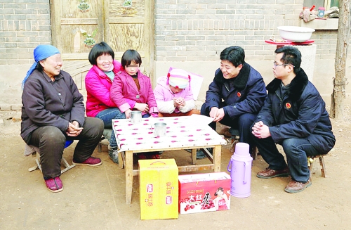 去年2月份,魏县离异女子赵某(左二)因犯非法拘禁罪,被判处有期徒刑10个月。前不久,赵某刑满释放,办案检察官得知后,于2月20日带着生活用品来到赵某家回访,了解她们一家的生活现状。性格内向的赵某对自己犯罪一事心里还是有些“疙瘩”,检察官通过耐心细致地心理疏导,终于使赵某解开了心结、开心得笑了。