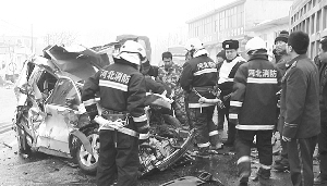 本报讯 (记者 刘彬)2月26日7时30分许,满城县石井乡东于河路段,一辆轿车与一辆大型货车迎面相撞,轿车司机被困驾驶室内,满城消防中队接到报警后紧急赶到现场实施救援。
