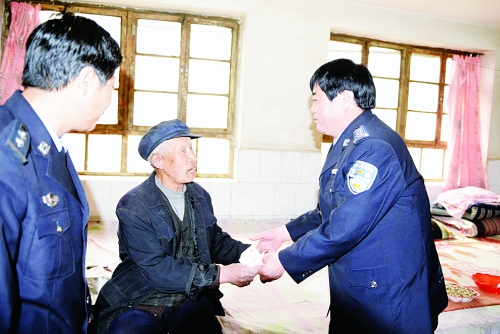 党的群众路线教育实践活动开展以来,青龙满族自治县公安局认真开展爱民帮扶活动,听民意、帮民困、解民忧、暖民心。到目前,民警走访贫困群众35户,开展各类帮扶活动70多次。3月19日,该县公安局政委杨志林来到活动联系点马圈子镇沈杖子村86岁的老党员王保春家,送上米面油等慰问品。得知他家还没有备耕生产,杨志林立即掏出500元钱,帮助购买种子、化肥。 戴燕山 摄