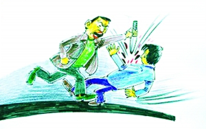 “你很牛吗?”看着不共戴天的杨某瞪着他的不屑眼神,吕某这次彻底火儿了,他从口袋里拿出刚从学校超市买来的水果刀,向杨某的腹部捅去……