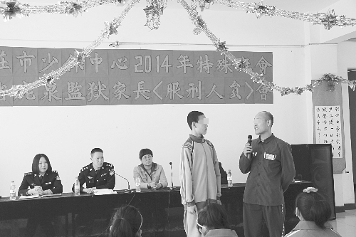 4月1日,石家庄市少年儿童保护教育中心和鹿泉监狱联合举办了亲情帮教——“特殊班会”活动。这天,少保中心的18个孩子在少保中心杨平副主任和老师的带领下,用课堂化的形式,在鹿泉监狱教学大厅举办了一场以“我的中国梦”为主题的特殊班会。孩子们面对自己正在服刑的爸爸,诉说自己的梦想,用他们对未来生活的美好憧憬,呼唤爸爸积极改造,早日回家。