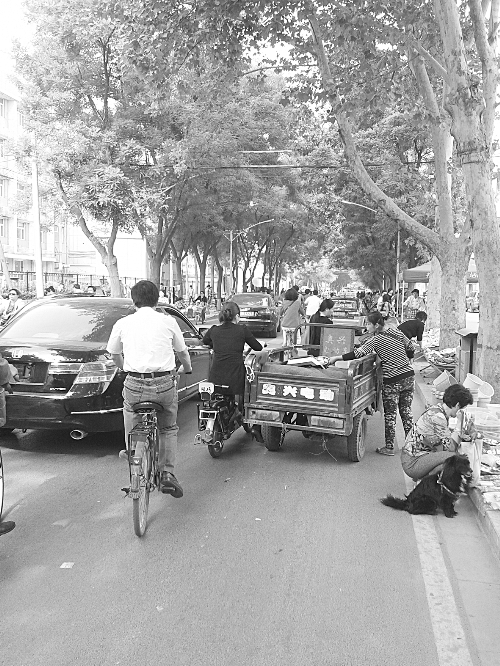 每天早上8点左右,石家庄市区便进入车流高峰期,但一些开设在市区支路上的早市依然熙熙攘攘,致使车辆难以通行。图为4月21日省会工农路上的摊贩将早市搬到了马路上。