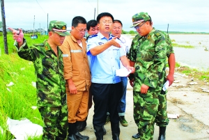 图为吕东飞在乐亭抗洪抢险一线。 本报记者 刘文利 摄