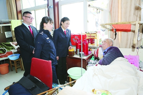 唐山市中级人民法院的青年干警来到该市截瘫疗养院 对正在接受治疗的孤寡老人进行慰问