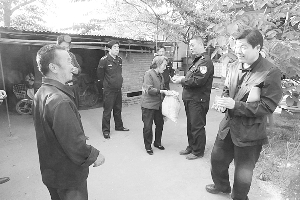 图为崔荣珍老人拿出花生向民警表示谢意。