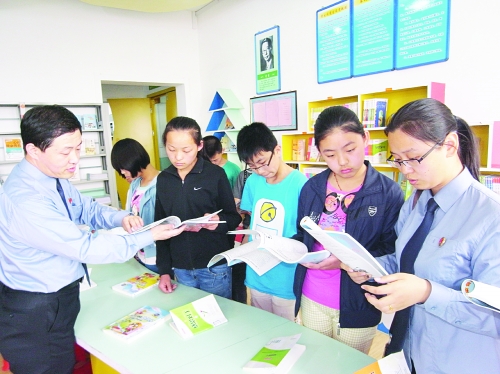 武强县检察院积极开展“检校共建”活动,该院政治处和未成年人刑事监察科的检察官经常送法到中、小学校,对学生进行普法宣传,并为未成年学生解答法律问题。图为5月16日,该院检察官到武强县第一实验小学,给学生送去新编的《道德与法治教育读本》,并在现场有针对性地对学生进行法律讲解和咨询服务。