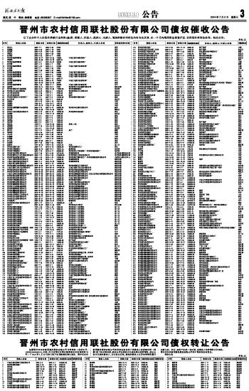 根据晋州市农村信用联社股份有限公司与李增收(身份证号:132322195909090174,住所:河北省晋州市晋州镇李家庄村幸福胡同22号)于2014年5月20日签订的不良贷款债权转让协议,晋州市农村信用联社股份有限公司将其依法享有的下列债务人的借款合同(借据)项下的全部权利,通过公开拍卖的方式依法转让给李增收。现以公告方式通知债务人,自公告之日起,请相关债务人立即向李增收履行还款义务。此后,由此产生的一切后果,由债务人和李增收自行承担,晋州市农村信用联社股份有限公司将不再承担任何责任。