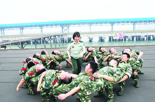 为缓解官兵暑期执勤训练压力,7月2日,黄骅边检站组织开展心理服务到一线活动,通过开展团体游戏的减压方式为官兵“心理降温”。图为官兵正在进行“叠罗汉”心理游戏。