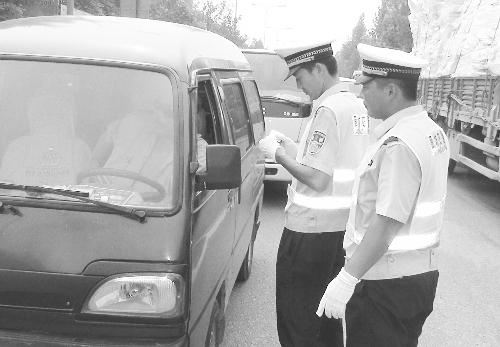 廊坊市交警二大队正在开展集中整治机动车涉牌涉证违法行为专项行动,依法坚决治理打击无牌无证、假牌假证、套牌套证及驾驶报废车、拼装车等严重交通违法。图为6月29日上午,民警冒着高温严查机动车驾驶证。