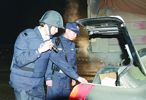 青龙满族自治县公安局民警进驻暑期安保警务站以来,顶风雨、战酷暑,严格执法、热情服务。截至7月3日,两个检查站累计查车1800余次、排查人员16000余次,查获盗抢车一辆、非法吸食持有毒品3人、冰毒55克、各类违禁物品65件,有效剔除了安全隐患。图为执勤民警在一山东牌照车后备厢查出一副假牌照。经查,该车为盗抢车辆,并查获吸毒人员2人、冰毒55克。