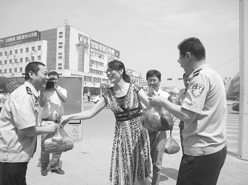 为酷暑下执勤的交警送上一份“清凉”