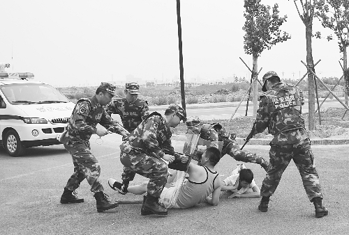唐山市公安组织官兵进行抓捕“暴恐分子”模拟演练
