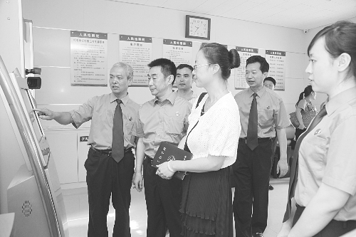 7月17日,省检察院检务公开督导组一行到衡水市检察机关调研指导检务公开推进工作,对衡水市检察机关在检务公开工作上所取得的成绩给予充分肯定。图为督导组一行参观桃城区检察院的控申接待室。