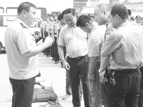 为进一步展示执法规范化建设所取得的突出成果,拉近民警与群众的距离,7月28日,辛集市公安局举办了“警营开放日”活动。辛集市人大代表、政协委员、群众代表、新闻媒体等各界人士参加了该活动。图为民警向参观人员介绍警用装备。 通讯员 徐静 摄