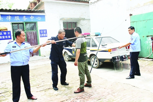随着社区矫正接收人员的增多,近日,大名县司法局在办公楼大院举行了反恐防暴应急演练,立足突发事件防范、涉暴人员的控制和制服等方面,进行现场演习,并请县公安局巡特警专业人员进行现场指导,提升了从业人员的安全防范意识与本领。图为社区矫正管理人员现场进行反恐防暴演练与学习。