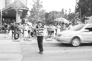 图①:七桥岗位于北戴河风景区的中心地带,周边是刘庄家庭旅馆区,是游客和车辆往返于浴场和旅馆之间的必经之地,由于没有设置交通信号指示设施的条件,交警执勤时只能靠不停地打手势、吹哨子、喊话等方式指挥交通。