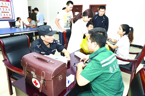 为了使民警以更好的状态投入到暑期工作中,8月17日,秦皇岛市卫生局组织市直医院专家组成医疗队,来到北戴河执勤一线为民警体检、送医送药。医疗队先后来到各警务工作站、治安卡口、民警驻地,为600余名民警进行了巡诊,同时为民警带来了价值一万余元的常用药品。