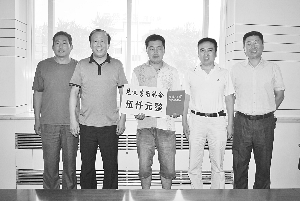 下图为桥西区相关人员为孔锋刚(中)颁发证书和奖金。
