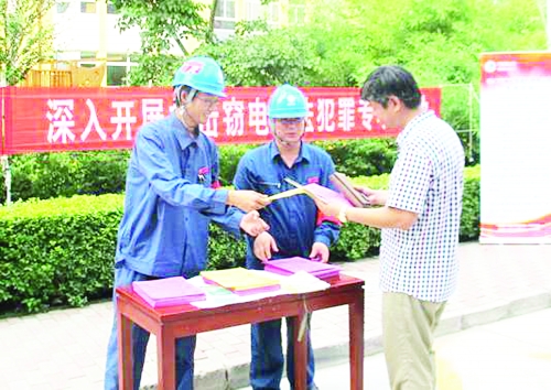 自保定市开展警电联合打击窃电违法犯罪专项行动以来,国网河北省电力公司(保定)共产党员服务队深入各个小区宣传电力法规,为居民及商业用户详细讲解窃电的危害性,并发放了相关宣传材料。 本报记者 刘彬 摄