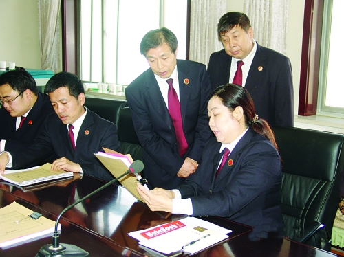 近日,由冉玲惠任组长的省检察院基层检察院建设工作评估组一行六人,对行唐县检察院的各项工作进行了严密细致的抽样评估,旨在加强基层检察院建设,提升基层检察院建设水平。行唐县检察院党组书记、检察长何步云就本院围绕基层检察院建设“四化”要求,全面加强自身建设的工作向评估组作了详尽汇报,并表示要以此次评估工作为契机,促进各项检察工作在新的起点上取得新的进步和提高。图为冉玲惠(右一)一行在认真履行评估职责的工作场面。