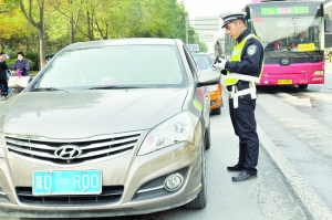 记者从省会交警部门了解到,交警在一些路口和进出市口都放置了提示牌,提示司机限行车号。同时为了给车主适应限行措施的时间,在限行首日中午12时前,执勤民警只进行劝返,不进行处罚。据交管部门统计,当日12时前,省会市区1000多名交警共劝返机动车近万辆。