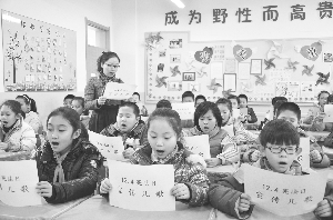 ② 在我国第一个国家宪法日到来之际,石家庄市长安东路小学编印了宪法基本知识儿歌,并要求各班级组织学生学习。这是12月2日下午,四年级三班的同学们在老师的带领下诵读儿歌。