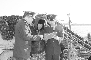 ⑦ 12月3日,秦皇岛边防支队抚宁边防大队洋河口边防派出所民警冒着大风严寒,深入辖区码头,向渔民普及宪法知识。
