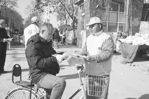 12月1日,邯郸市安全生产监督管理局组织集中宣传新《安全生产法》,同时举办了安全生产志愿服务活动。活动共发动200余名志愿者现场宣传,发放新《安全生产法》手册3000册、公开信9000张,家用环保宣传品1000多套。图为志愿者正在向群众发放宣传材料。 刘鹏 摄