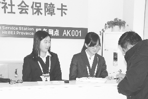 近日,元氏县人社局提高服务质量,整合信息资源,在全县范围推广使用社保卡“一卡通”,真正将社保卡变成了一张“惠民卡”。图为家住元氏县苏村张北营村的村民王先生在村信用代办点来支取自己的医疗报销费用。王光辉 摄