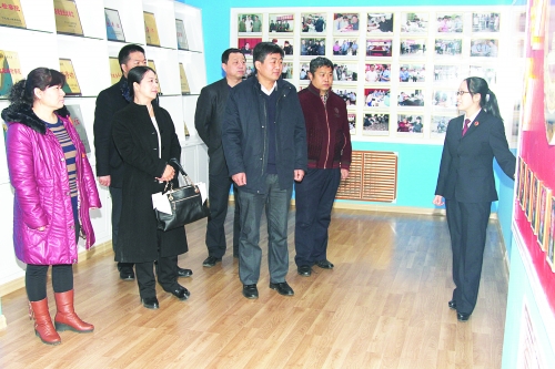 12月21日,省档案局评审组到遵化市人民检察院评审档案目标管理。经过评审组评审,遵化市人民检察院以96.3分顺利通过认定,成为遵化市首家获得档案工作目标管理5A级认定的单位。图为省档案局评审组正在参观该院荣誉室。