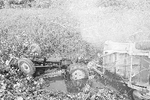 拖拉机翻入沟渠