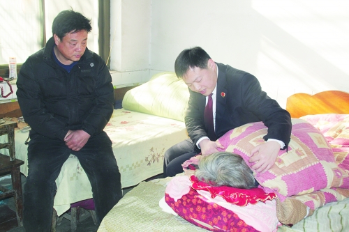2014年12月31日,永年县人民检察院党组书记、检察长韩文周倡议干警走进困难群众家里,开展各种形式的慰问活动。图为该院未检科干警到该县困难老党员家中进行慰问。