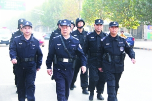 春节日益临近,为给群众创造一个平安祥和的社会治安环境,让人民群众欢欢乐乐度过一个平安春节,近期以来,石家庄市栾城区公安局党委坚持打防并举,屯警街头,加大巡逻防控的强度和密度,全力挤压犯罪空间。图为栾城区副区长、公安局长赵永超带领民警在城区主街道进行武装巡逻。