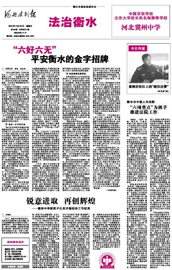 乡亲们口中传颂的“六好六无”,就是衡水市在辖区开展的基层平安创建活动中的主要做法。为将中央和省、市有关进一步推进平安建设工作的精神落到实处,2014年以来,衡水市以民意为导向,紧紧围绕影响群众安全感和满意度的问题,着力筹划在新的起点、从更高层次上扎实开展“ 六好六无”活动,全力打造百姓满意的“平安衡水”。前不久,在该市开展的平安建设民意调查中,群众对“ 衡水平安建设”的满意率高达98%。“六好六无”活动也被省委政法委确定为“全省平安建设六个示范模式之一”。省委常委、政法委书记张越专门对该市开展“ 六好六无”活动的经验表示肯定并批示。