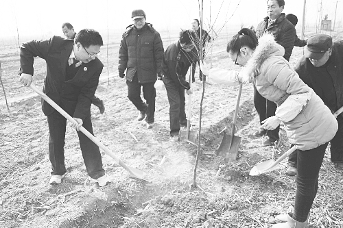 冀州市人民检察院组织干警来到衡水湖森林公园植树现场