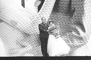 图为在颁奖现场,组委会为微博作品《最美警嫂大变身》主人公、唐县公安局民警魏爱民夫妇准备的现实版的“警嫂大变身”。 徐超 摄