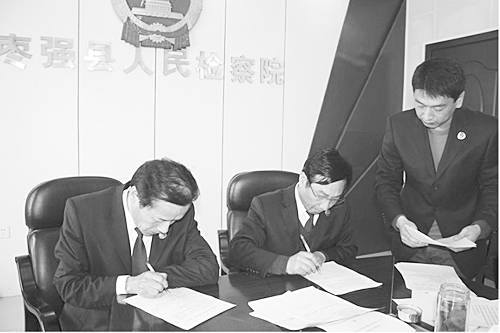 枣强县人民检察院举行了2015年度《党风廉政建设主体责任责任状》和《“五零保底”责任状》签字仪式