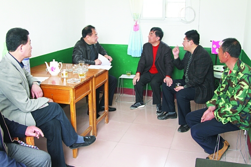 为落实省、市委关于基层组织建设年的部署要求,遵化市检察院选派三名优秀干部组成工作组, 到该市西草场村驻村开展基层组织建设,帮助村党支部带领群众致富增收。4月24日,遵化市检察院检察长吴锡东来到西草场村,督导调研驻村帮扶工作。吴锡东和村干部、村民代表进行座谈,了解发展经济遇到的问题,倾听群众对驻村工作组的意见。图为吴锡东等向村干部和村民代表征求意见。