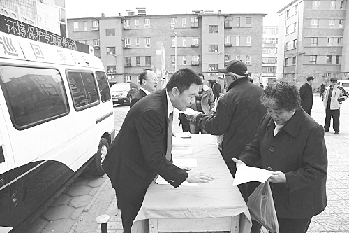 为更好贯彻实施新修订的环保法,近日,张家口市经开区法治办联合区法院环保法庭干警共同深入纬一路社区,多角度,全方位地向小区居民讲解环保知识、节能减排小方法,并向居民发放了环保知识宣传手册。图为工作人员正在向小区居民讲解环保知识。