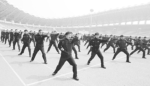迁安市公安局从3月中旬开始积极组织全体民警开展以“学理论、练队列、练体能、练技能”为主要内容的春训活动。日前,该局举行了春训汇报演练。图为演练现场。 本报记者 刘文利 摄