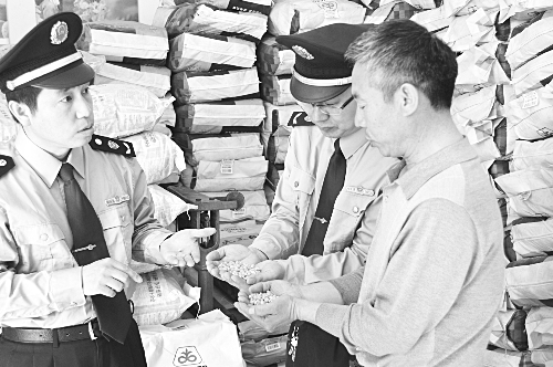 图为执法人员检查经营户销售的种子。 王建海 许景林 摄