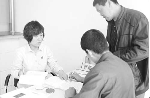 景县法院立案庭庭长陈灵霞指导诉讼当事人填写诉讼材料