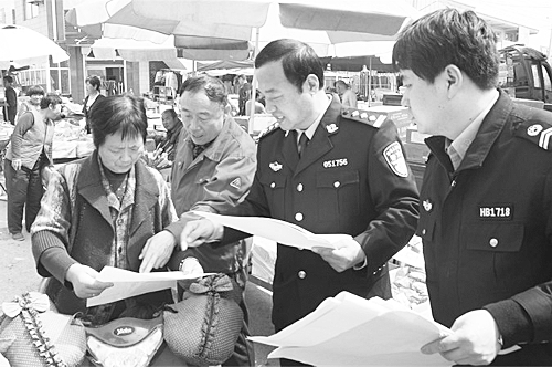 4月份以来,深州市公安局联合中石油华北油田采油五厂来到石油生产企业和石油长输管线沿途涉及的村庄、集镇开展法律宣传活动。活动中,发放打击涉油违法犯罪活动的《通告》近万份,发放印有石油安全生产、公布举报电话的印刷品2000余份,受到群众欢迎。图为民警给群众讲解法律知识。